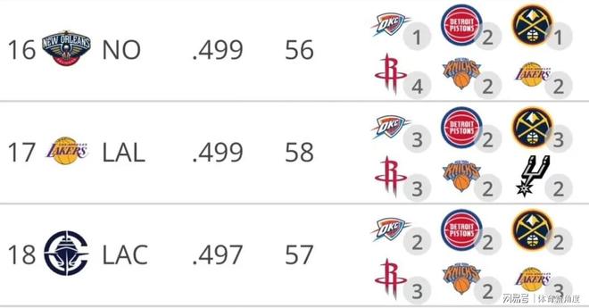 再看看湖人接下來的賽程安排,整體難度在聯盟里排第17位,對手的平均勝率是49.9%。湖人隊和現在西部排名前三的球隊都還有三場硬仗要打呢,和東部前二的活塞、尼克斯也還沒碰過面。在剩余的賽程里,雷霆、掘金、馬刺這三支球隊的難度那可是最高的喲!